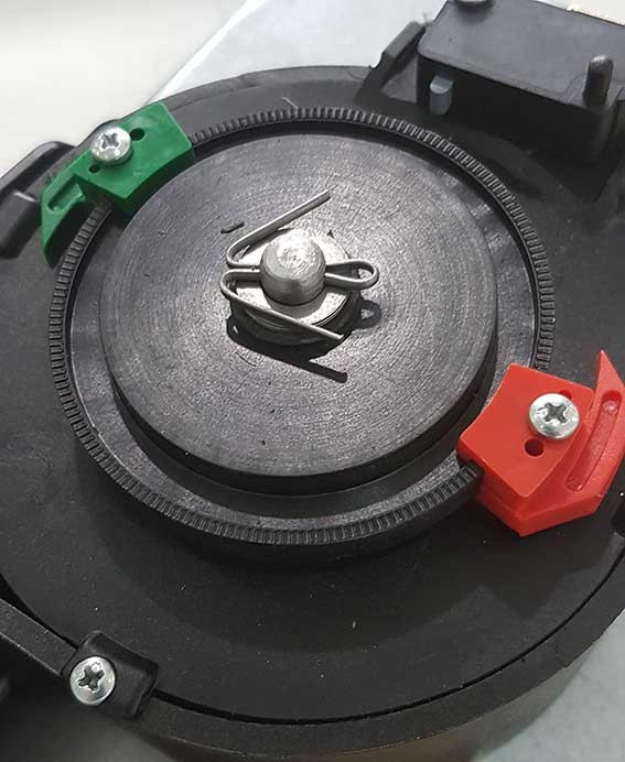 La conception de la tête de coupe R117 intègre deux leviers de blocage colorés — rouge et vert — permettant une identification visuelle immédiate du sens de montage. Ce repérage clair réduit tout risque d’erreur et garantit une fixation parfaitement stable lors du fonctionnement de la motorisation. Le levier vert correspond à la position d’ouverture, tandis que le levier rouge indique la fermeture, assurant un verrouillage ferme et sécurisé à chaque utilisation.