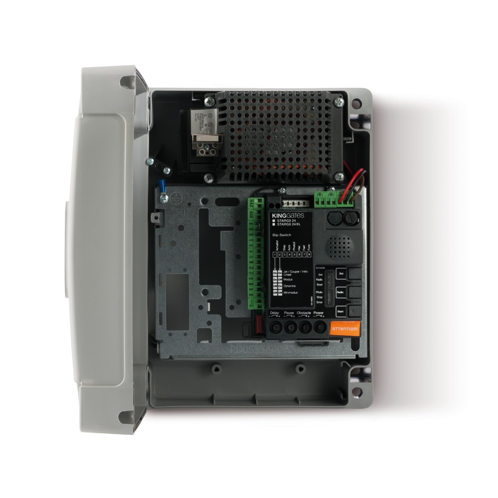 Automatisez votre portail avec le Kit Motorisation EA KING GATES JET 24 Accessoires NOVO, conçu pour des vantaux jusqu’à 3 m et 300 kg. Performant, silencieux et élégant, il offre une installation simplifiée, une électronique intuitive et des accessoires complets pour un confort et une sécurité au quotidien.