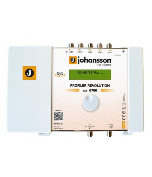 Amplificateur à filtre 5G LTE terrestre 6700 Profiler Revolution Amplificateur à filtre terrestre programmable : 5 entrées : BI+FM / 4 x VHF-UHF / > 50 Canaux / AGC / Téléalimentation 12-24 V. Le Johansson Profiler Revolution est un amplificateur de filtre et un convertisseur programmable facile à utiliser pour les signaux terrestres. Le module optimise les signaux terrestres VHF/UHF et BI+FM à partir de plusieurs entrées dans le but de fournir des images de haute qualité sur votre écran de télévision. L'amplificateur à filtre programmable de pointe n'a pas d'équivalent sur le marché en raison de sa technologie révolutionnaire : - BALAYAGE DE CANAUX intelligent et automatique ; - Peut traiter plus de 50 canaux (32 filtres) ; - Peut traiter des canaux DAB individuels (1,7 MHz) ; - Peut traiter les canaux de sortie en bande S ; - Peut gérer simultanément les signaux VHF et UHF de la même antenne d'entrée ; - Peut convertir une large sélection de chaînes ; - Protection 5G LTE (694 MHz) ; - Filtres les plus précis du marché (>50 dB sur les canaux adjacents) ; - AGC en temps réel sur tous les filtres individuels ; - Flexibilité totale dans l'attribution de filtres à partir de n'importe quelle entrée. Chaque canal peut être décalé en fréquence vers n'importe quel autre canal de la bande VHF ou UHF (Flex Matrix) ; - Pour éviter que des personnes non autorisées ne modifient les paramètres, tous les produits Profiler peuvent être verrouillés avec un code de sécurité ; - Fabriqué en Europe, pour une application mondiale ; - 5 entrées : BI+FM / 4 x VHF-UHF y compris les sous-canaux DAB ; - Alimentation à distance 12-24 V (CC automatique pendant le balayage des chaînes) ; - Dimensions du produit (H X L X P) : 165 mm x 217 mm x 59 mm.