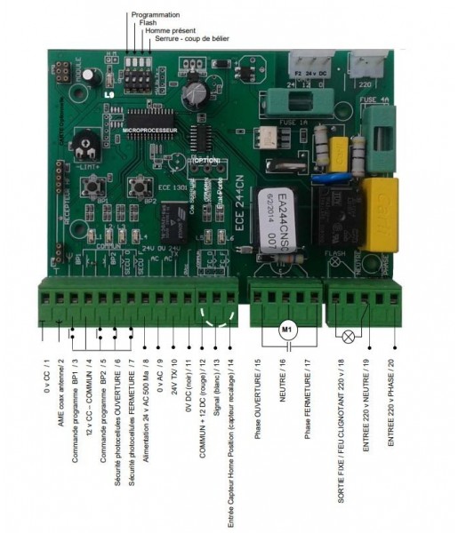 EA EA244CN CARTE SANS COFFRET AVEC ENCODEUR armoire de commande 230V Portail coulissant et barrière levante