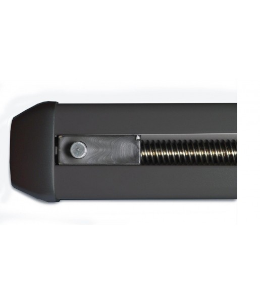 Motorisation à vis sans fin irréversible, assurant un verrouillage automatique sans besoin de gâche électrique.