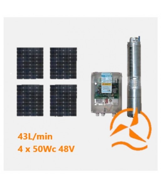 Kit solaire complet pompage 50 mètres 24-48 Volts 160 Watts 45 L/min avec 4 panneaux 50 W 12V
