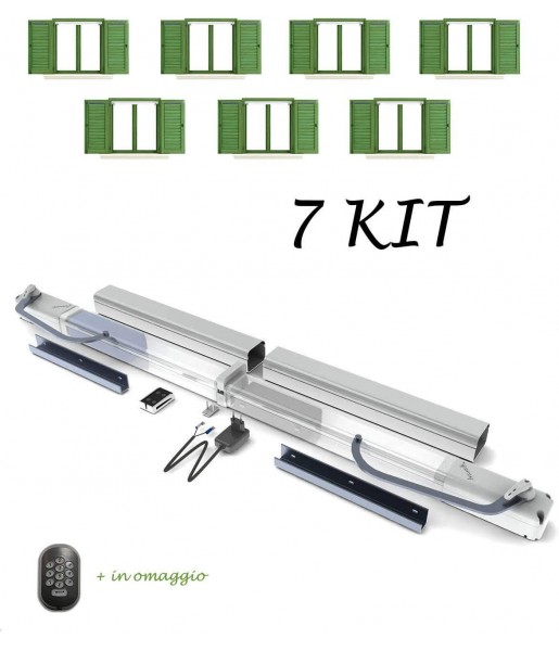 Paquet contenant 7 Kit + 1 têtiére en hommage. Kit pour motorisation 7 stores à double volet battant. Commander ouverture des stores aujourd'hui à la portée de tous.persy se fixe en quelques minutes à architrave ou le stipite la fenêtre nouvelle ou existante sans qu'il soit nécessaire, aucune préparation.Système de détection des obstacles, système de blocage antinitrusione lorsque les portes sont fermées. Commander ouverture des stores aujourd'hui à la portée de tous.persy se fixe en quelques minutes à architrave ou le stipite la fenêtre nouvelle ou existante sans qu'il soit nécessaire, aucune préparation.Système de détection des obstacles, système de blocage antinitrusione lorsque les portes sont fermées.En cas de besoin, la persiana peut être ouvert ou fermé manuellement : avec un simple geste se soulève le levier de déverrouillage et on passe la gestion manuelle. persy s'adapte à toute largeur de architrave : les stores monoanta min. 48 cm, à persane double porte de min. 69 cm jusqu'aux impôts de plus grande taille.Avec seulement 7 cm d'extension.Les moteurs sont couverts par un profil de longueur réglable qui s'intègre discrètement dans toute structure architecturale.Construit avec principe de irréversibilité mécanique, maintient bloquées les stores en position ouverte ou fermée, offrant une protection intégrée. Pour la plus grande protection spéciale elettroserratura persy-lock.Le spécifique elettro-chiavistello persy-block garantit la sécurité supplémentaire des stores de plus grande taille.Pouvoir commander l'ouverture des stores à une radiocommande avec support mural, à bouton avec fils ou par téléphone devient une simple choix personnel. En cas de besoin, la persiana peut être ouverte ou fermée manulamente : avec un simple geste se soulève le levier de déverrouillage et on passe la gestion manuelle, en abaissant le levier se rétablit la traction.Pour une meilleure efficacité energatica, pianifca, en inverse, la fermeture automatique des stores au crépuscule et elle réduit de 10% la consommation de risaldamento.
