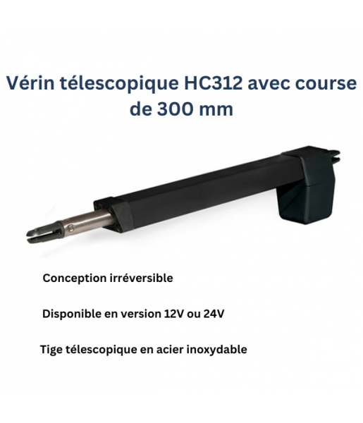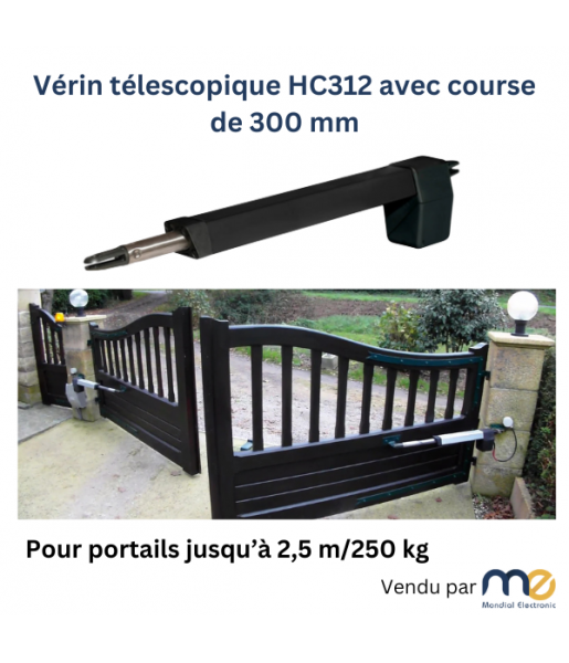 Vérin télescopique HC312 avec course de 300 mm – Pour portails jusqu’à 2,5 m/250 kg